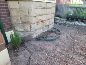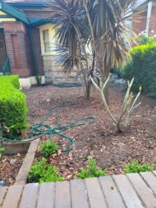 The front area is split in two – with the path to the house running up the centre. The two sections had a number of ornamental flower type plants – most of which I didn’t like (eg Bird of Paradise, a number of cactii and other succulents). The ground cover was red bark chips – ewww.